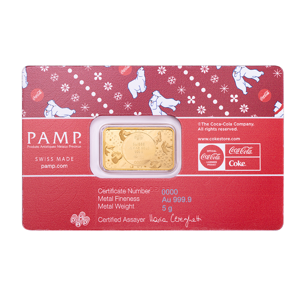 Celebrate the season with the 2024 5 Gram Coca-Cola Holiday Polar Bear Gold Bar, and bring home the magic and joy of Coca-Cola's beloved holiday tradition. Secure your limited edition bar!