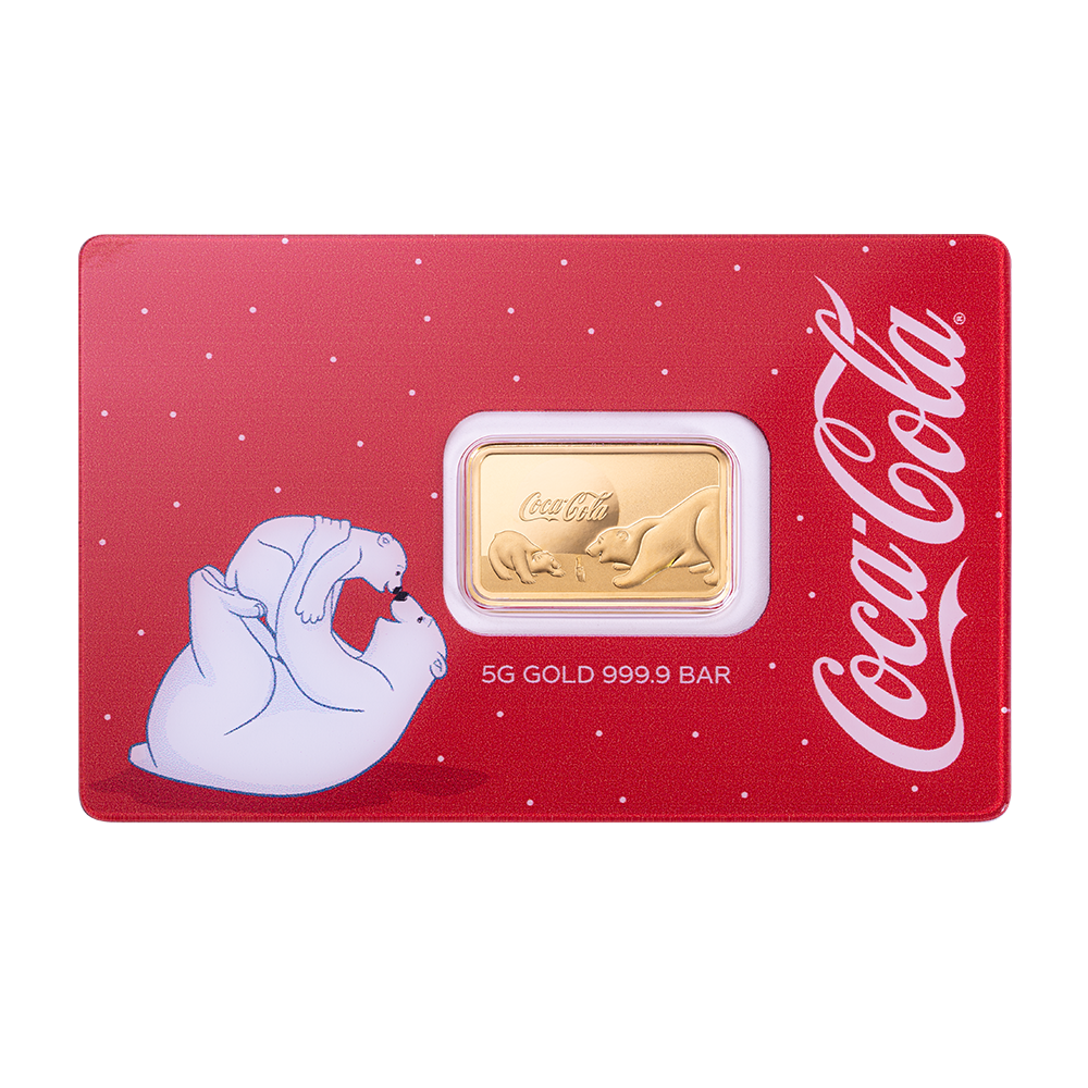The beloved animated polar bears from Coca-Cola's iconic holiday advertisements have now been immortalized in pure gold. First appearing in 1993, these playful digital creatures have captured hearts worldwide with their expressive faces and joyful winter antics. This holiday season, you can own a piece of this tradition with the 2024 5 Gram Coca-Cola Holiday Polar Bear Gold Bars.